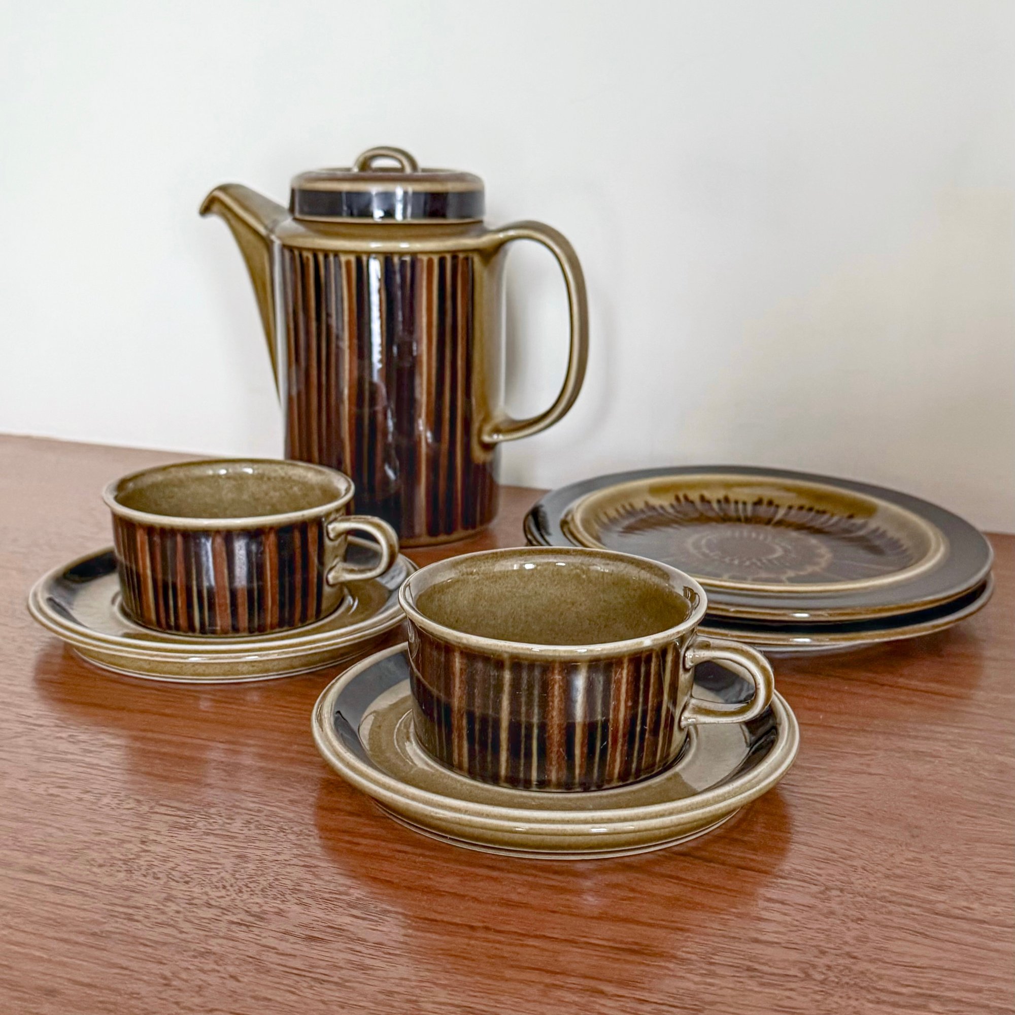 Vintage Arabia Finland Kosmos coffee set. Designed by Gunvor Olin-Grönqvist, Finland 1960s. In good vintage condition with signs of use.
