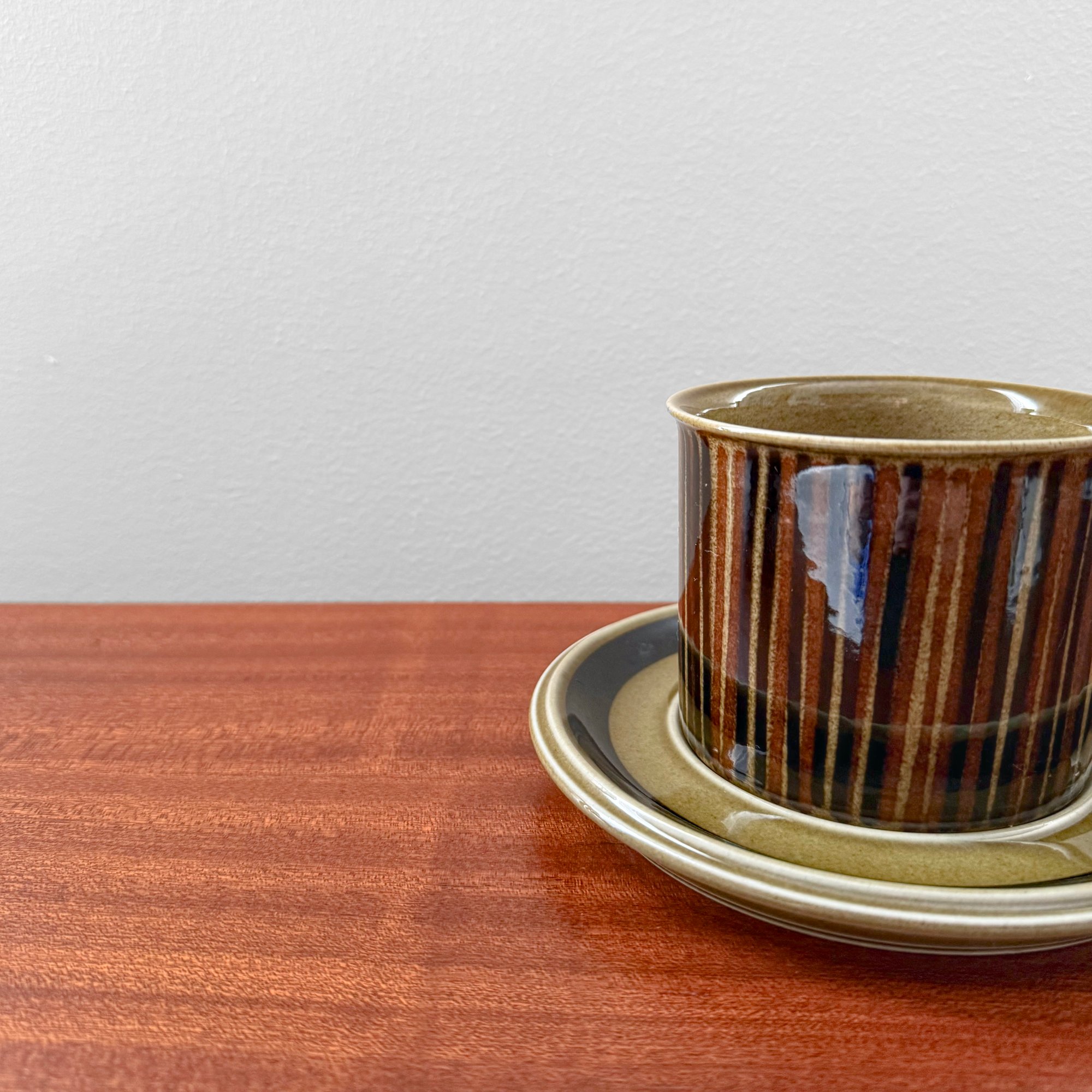Rare vintage Arabia Finland Kosmos large mug and saucer. Designed by Gunvor Olin-Grönqvist, Finland 1960s. In good vintage condition with signs of use.