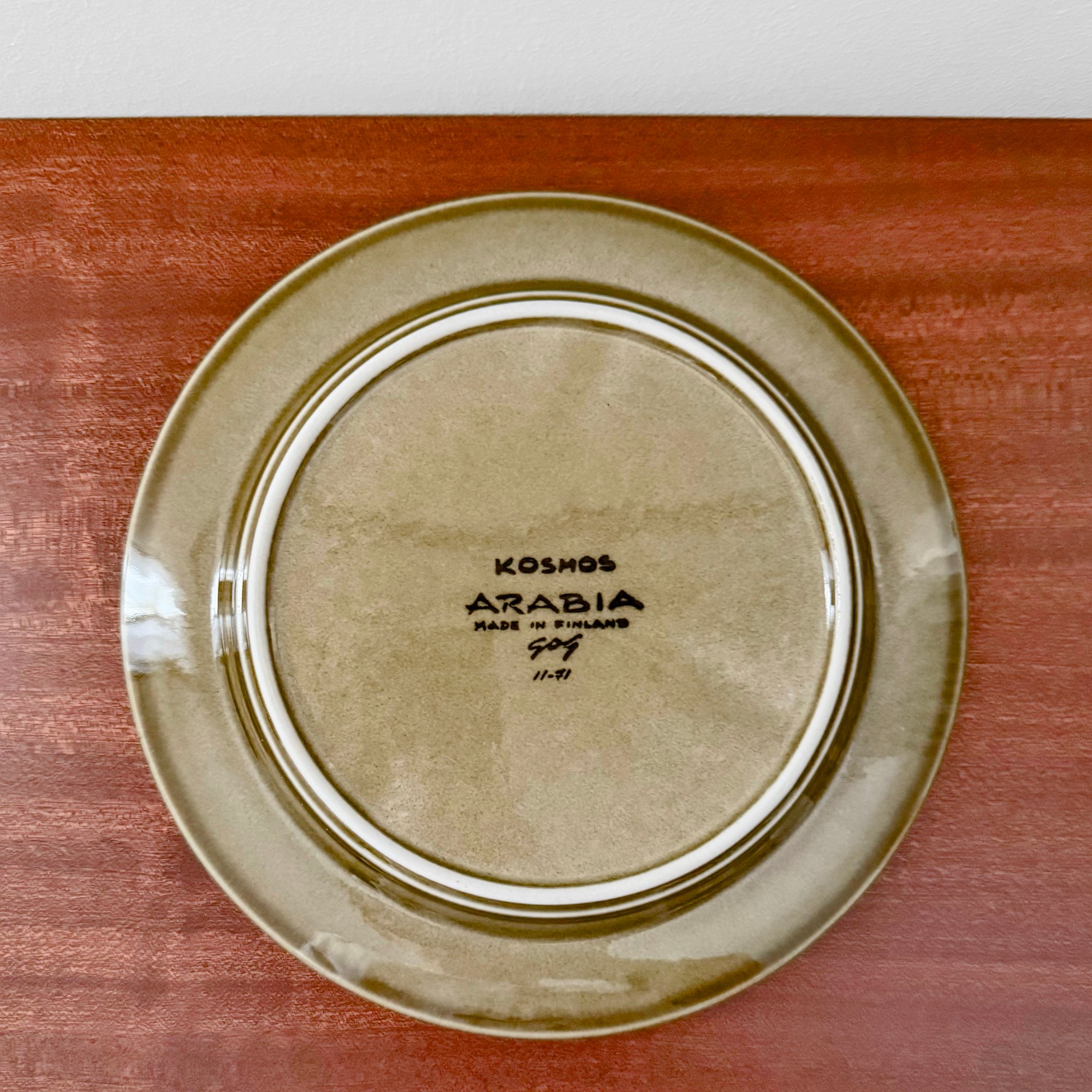 Vintage Arabia Finland Kosmos tea cup trio set with cake plate. Designed by Gunvor Olin-Grönqvist, Finland 1960s. In good vintage condition with signs of use.