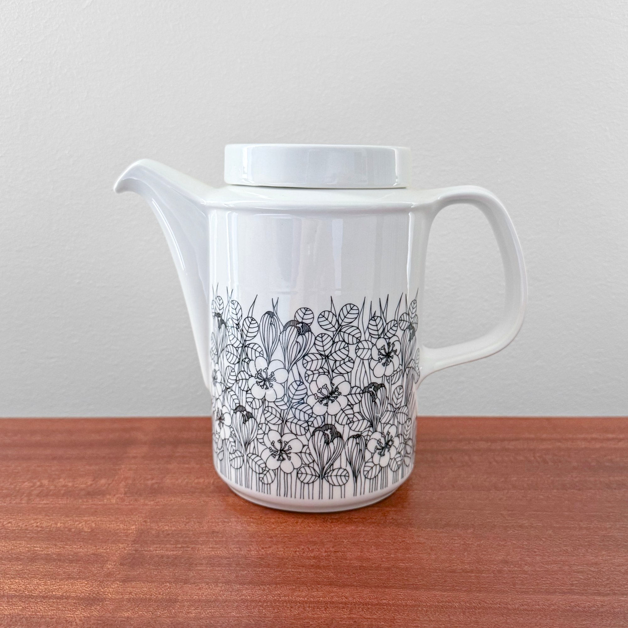 Very rare vintage Arabia Finland Krokus black and white coffee pot. Produced for limited period of time from 1978-79. Designed by Esteri Tomula, Finland 1970s. In excellent vintage condition.