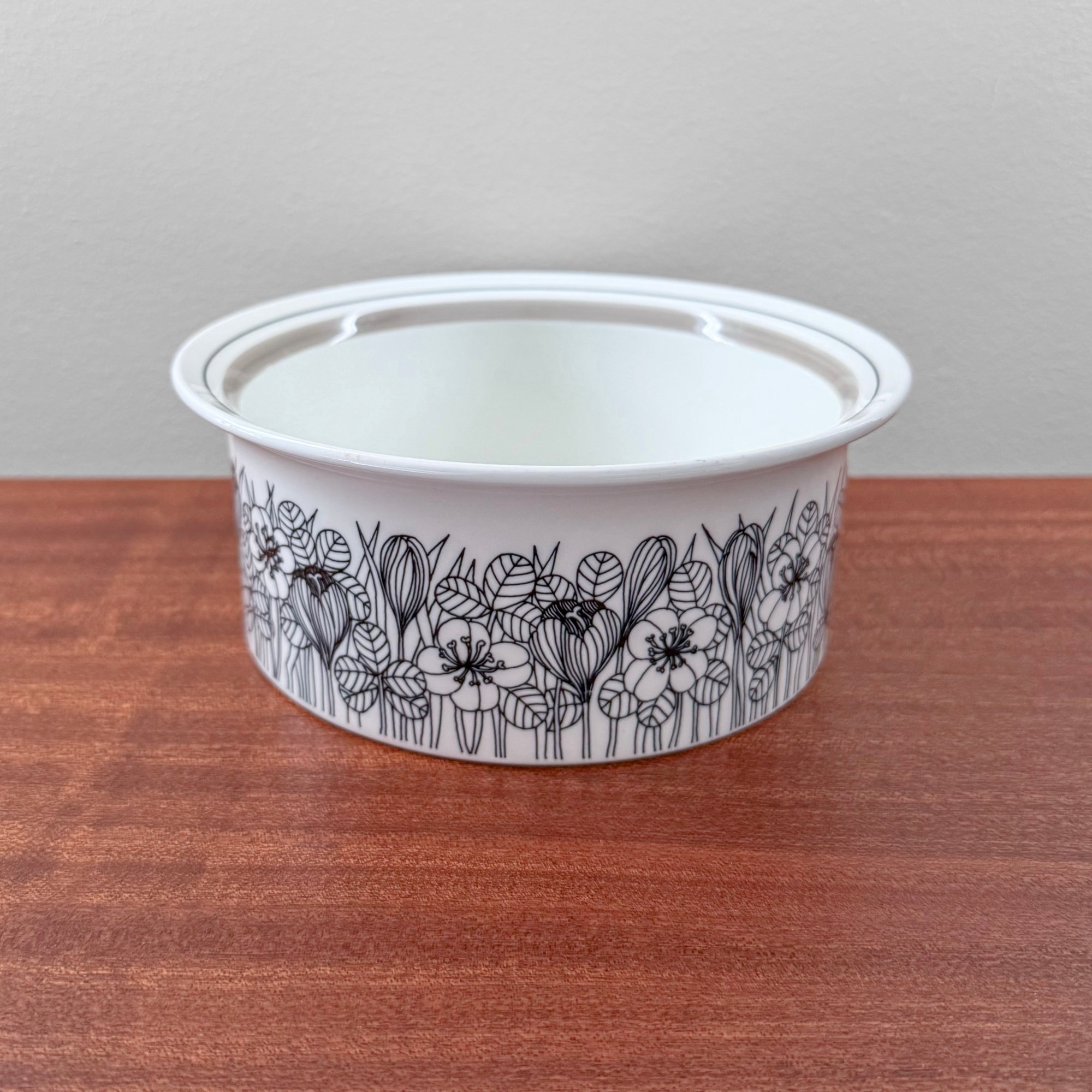 Rare vintage Arabia Finland Krokus black and white grey rim serving bowl. Produced for limited period of time from 1978-79. Designed by Esteri Tomula, Finland 1970s. In very good vintage condition.