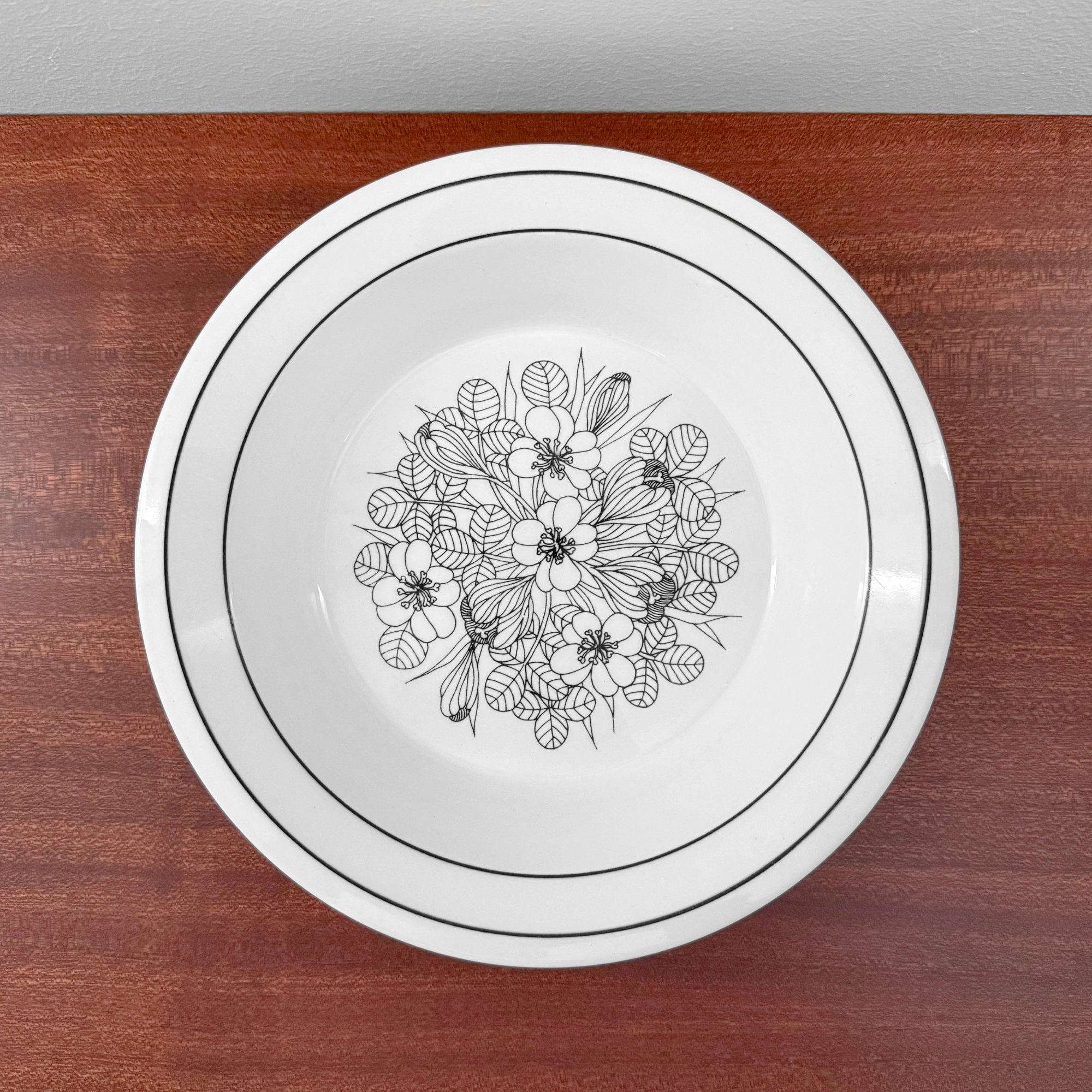Rare vintage Arabia Finland Krokus black and white soup plate. Produced for limited period of time from 1978-79. Designed by Esteri Tomula, Finland 1970s. In good vintage condition with signs of use and crazing.