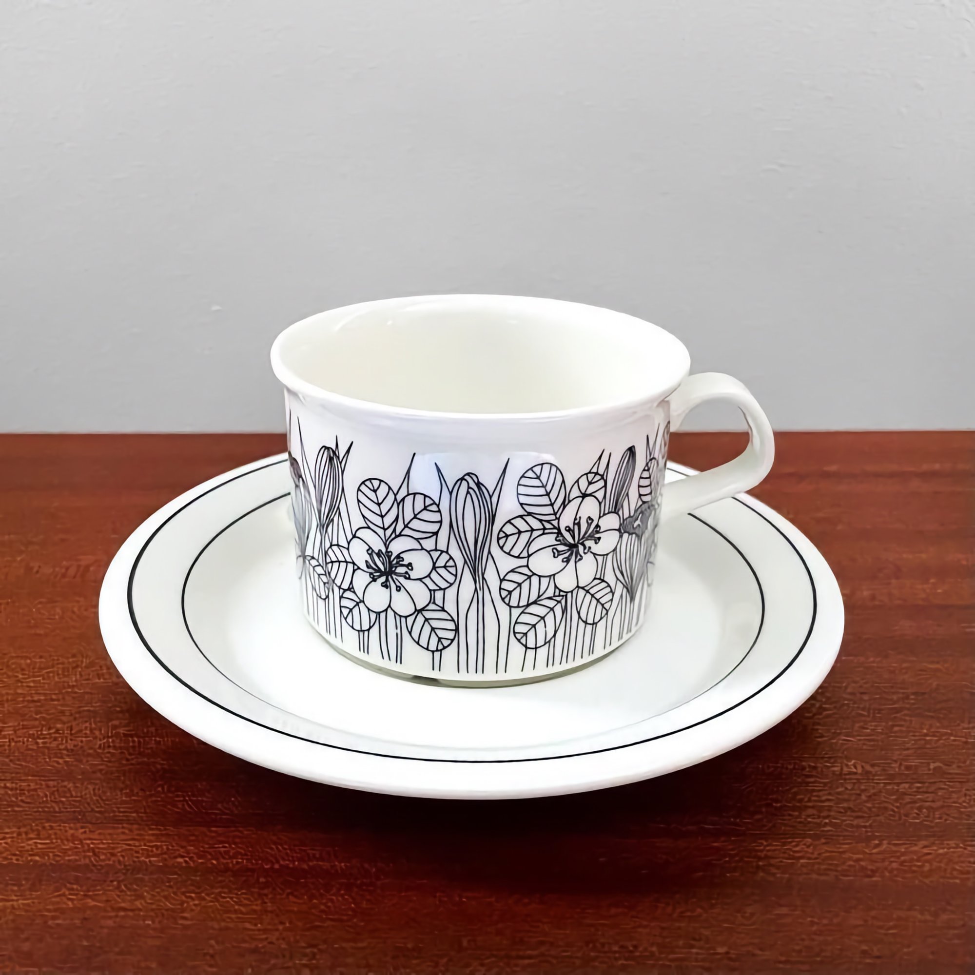 Rare vintage Arabia Finland Krokus black and white tea cup and saucer. Designed by Esteri Tomula, Finland 1970s. In excellent vintage condition.