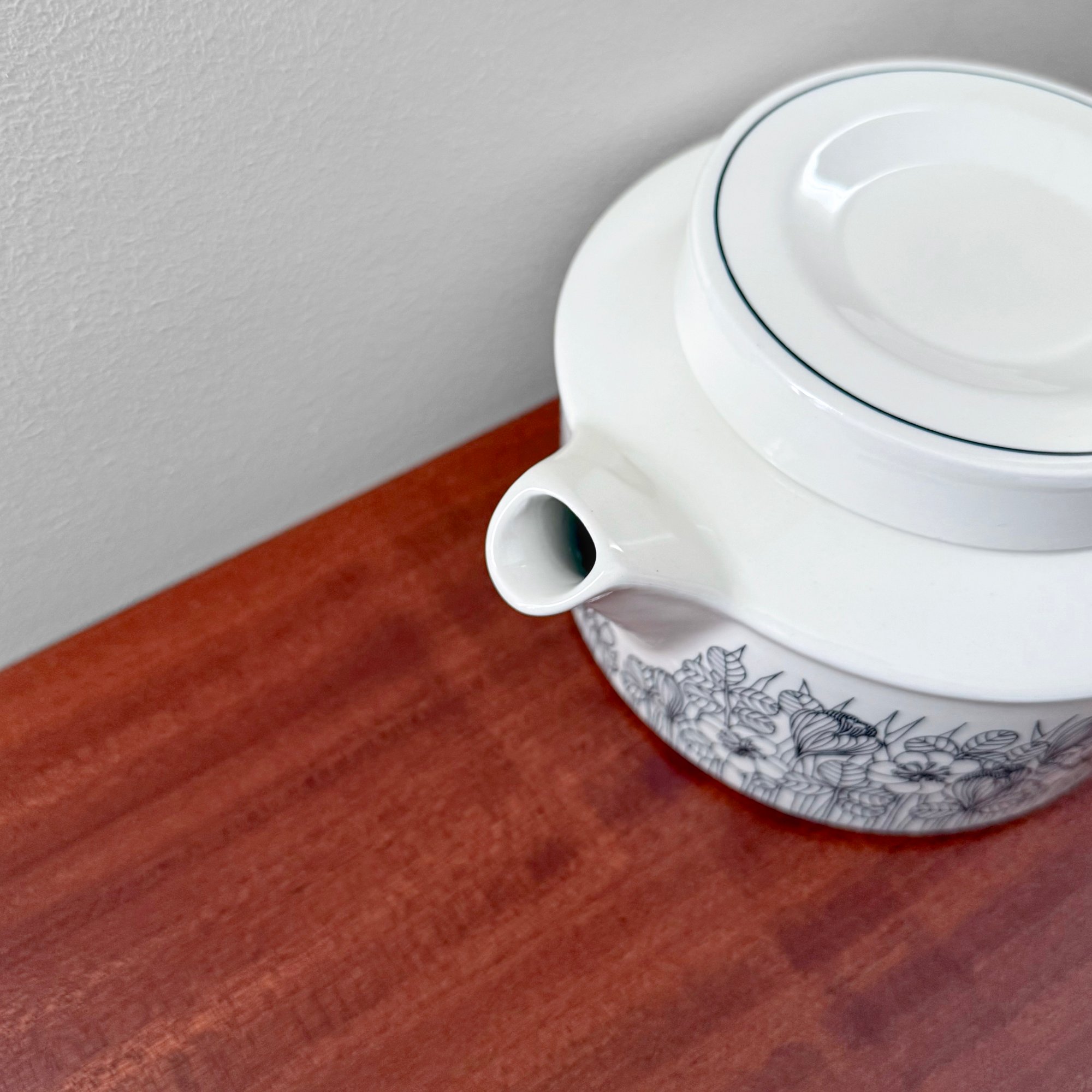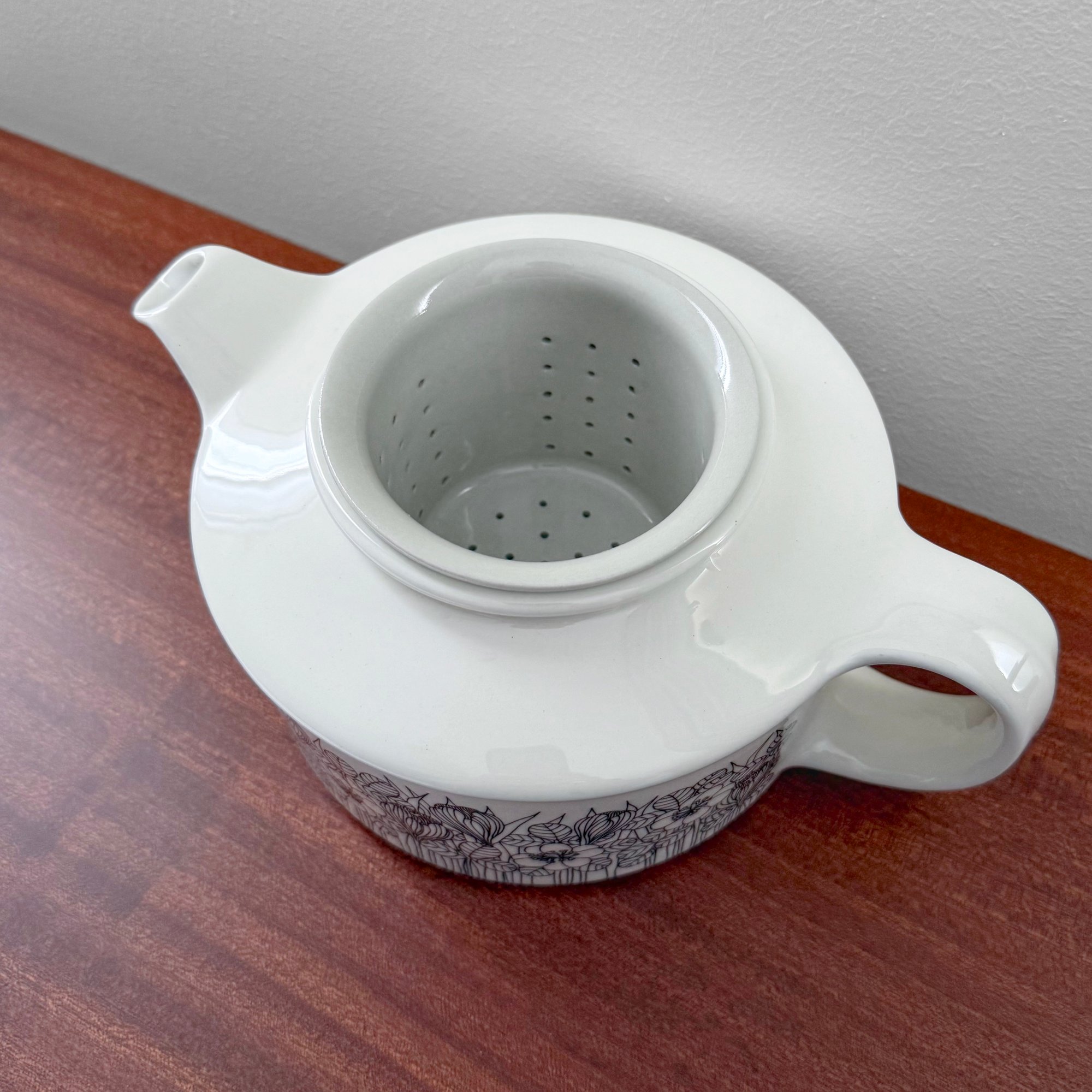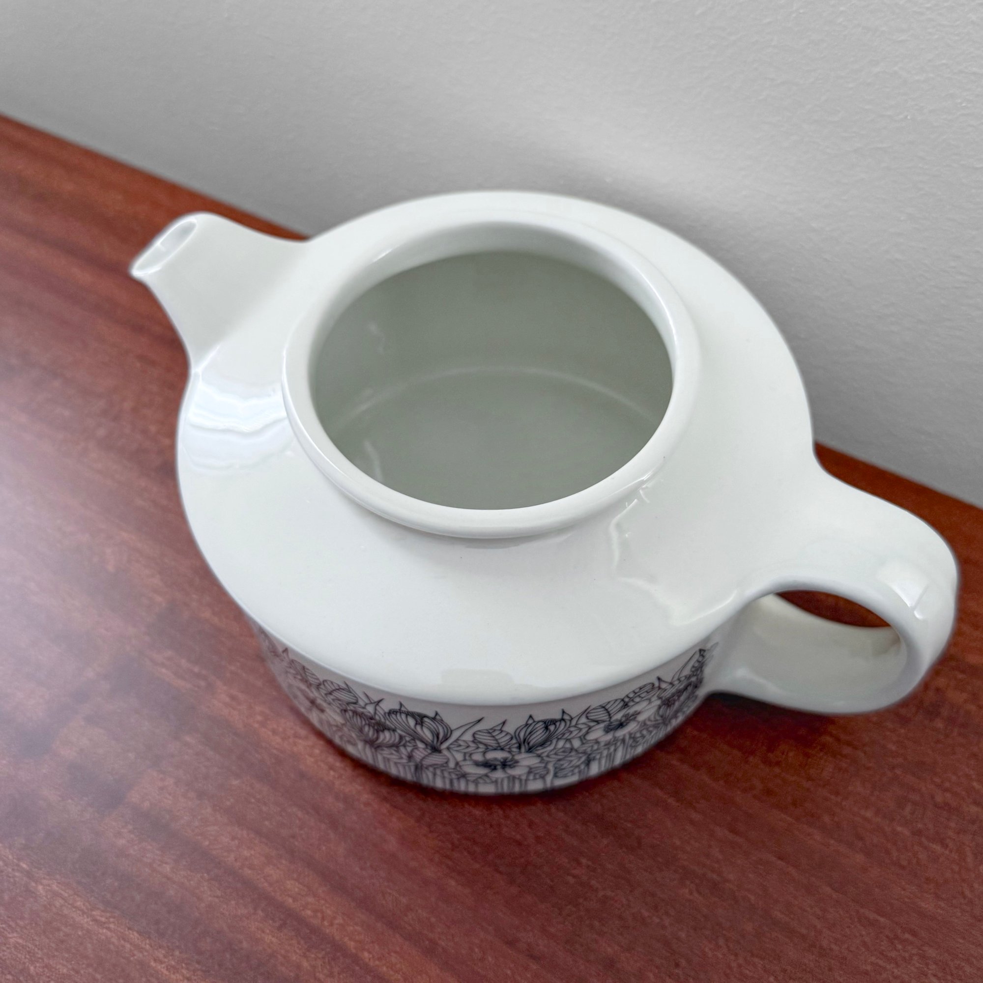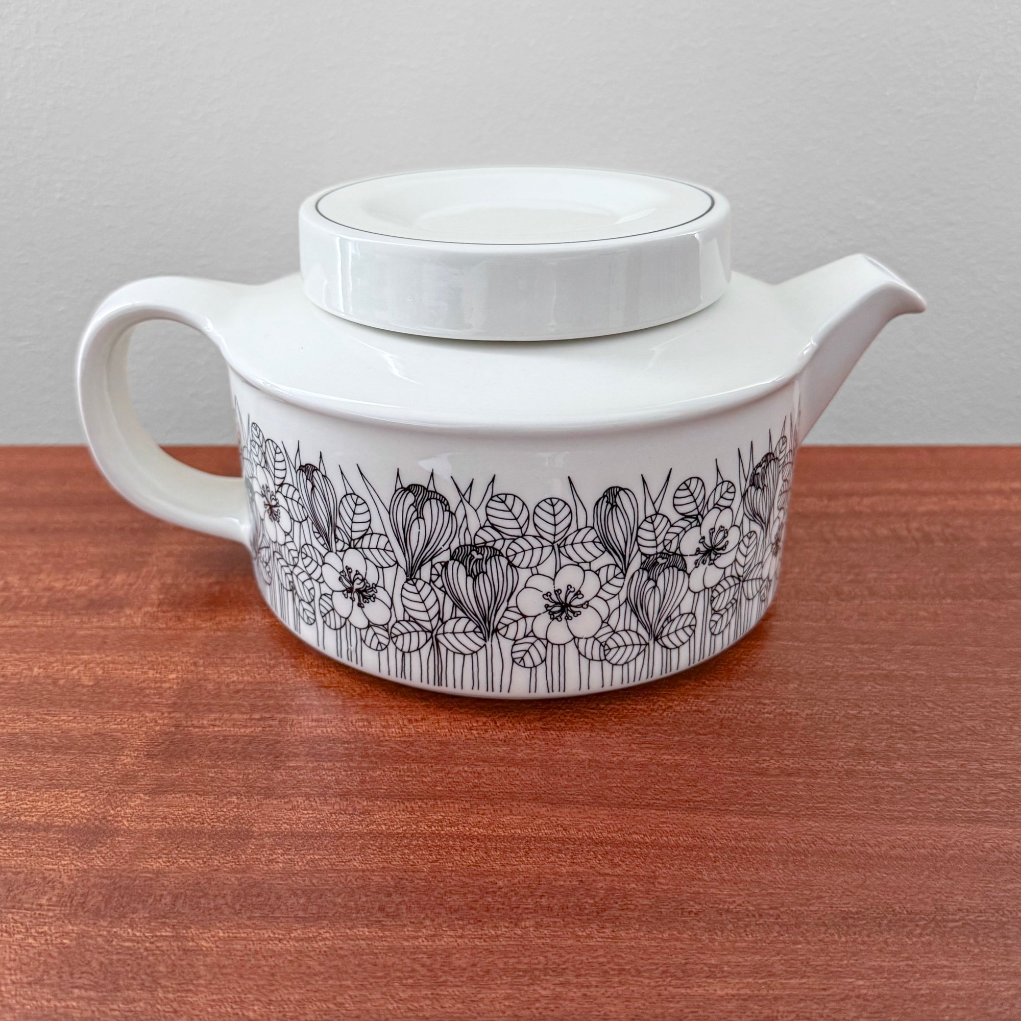 Very rare vintage Arabia Finland Krokus black and white teapot. Produced for limited period of time from 1978-79. Designed by Esteri Tomula, Finland 1970s. In excellent vintage condition.