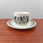 Rare vintage Arabia Finland Krokus coloured tea cup and saucer. Produced for limited period of time from 1978-79. Designed by Esteri Tomula, Finland 1970s. In good vintage condition with crazing over underside of saucer.