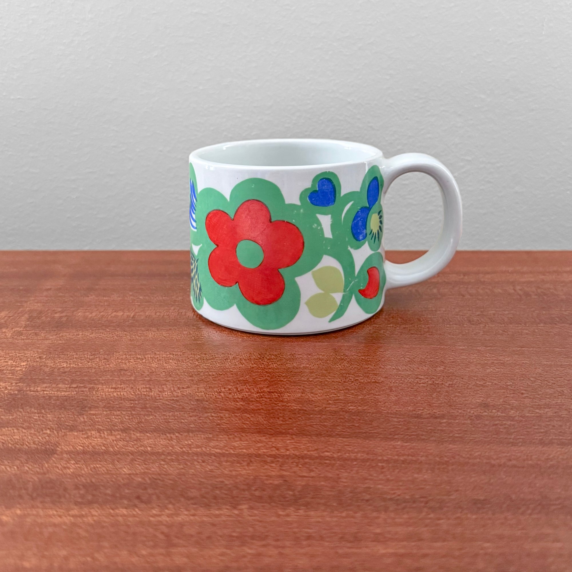 Rare vintage Arabia Finland Mittumaari mug. Designed by Gunvor Olin-Grönqvist, Finland 1970s. In good vintage condition with wear over decor.