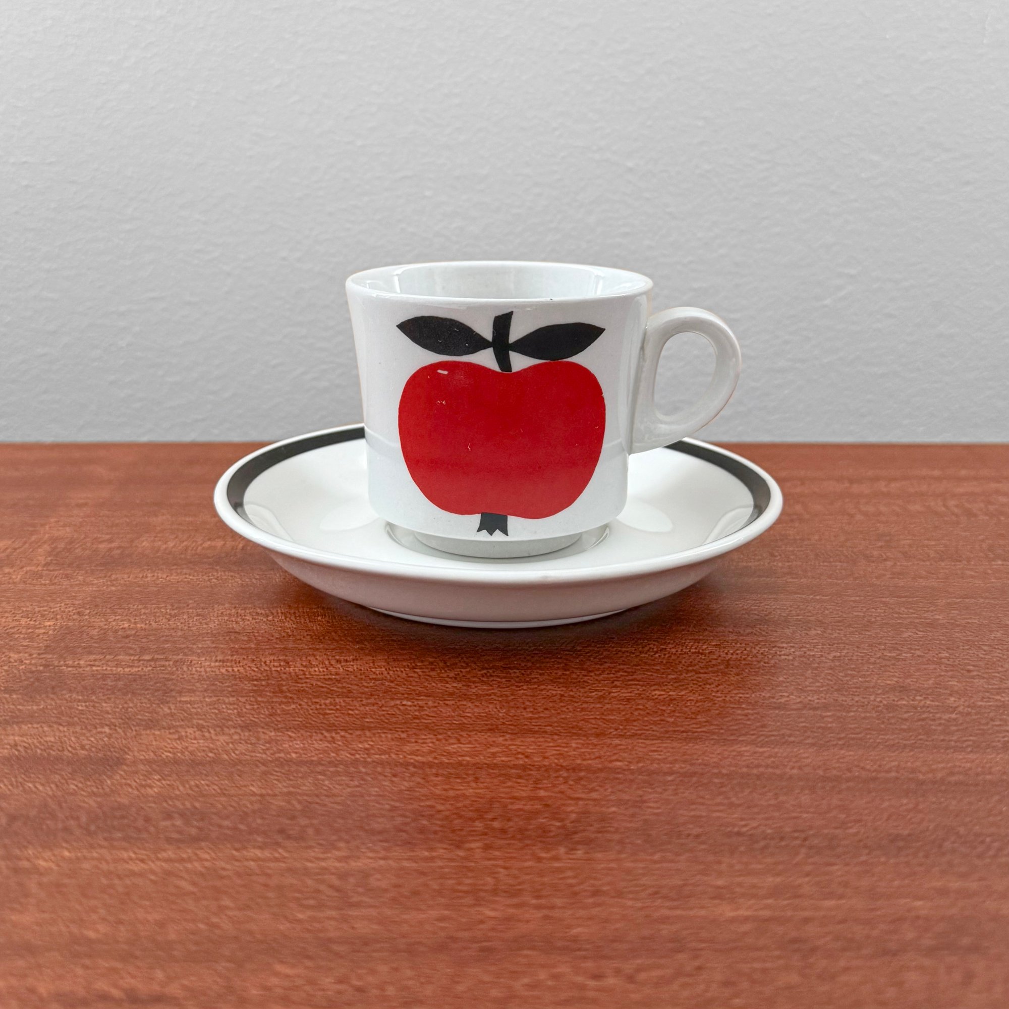Rare vintage Arabia Finland Omena coffee cup and saucer. Designed by Esteri Tomula, Finland 1970s. In good vintage condition with signs of use.