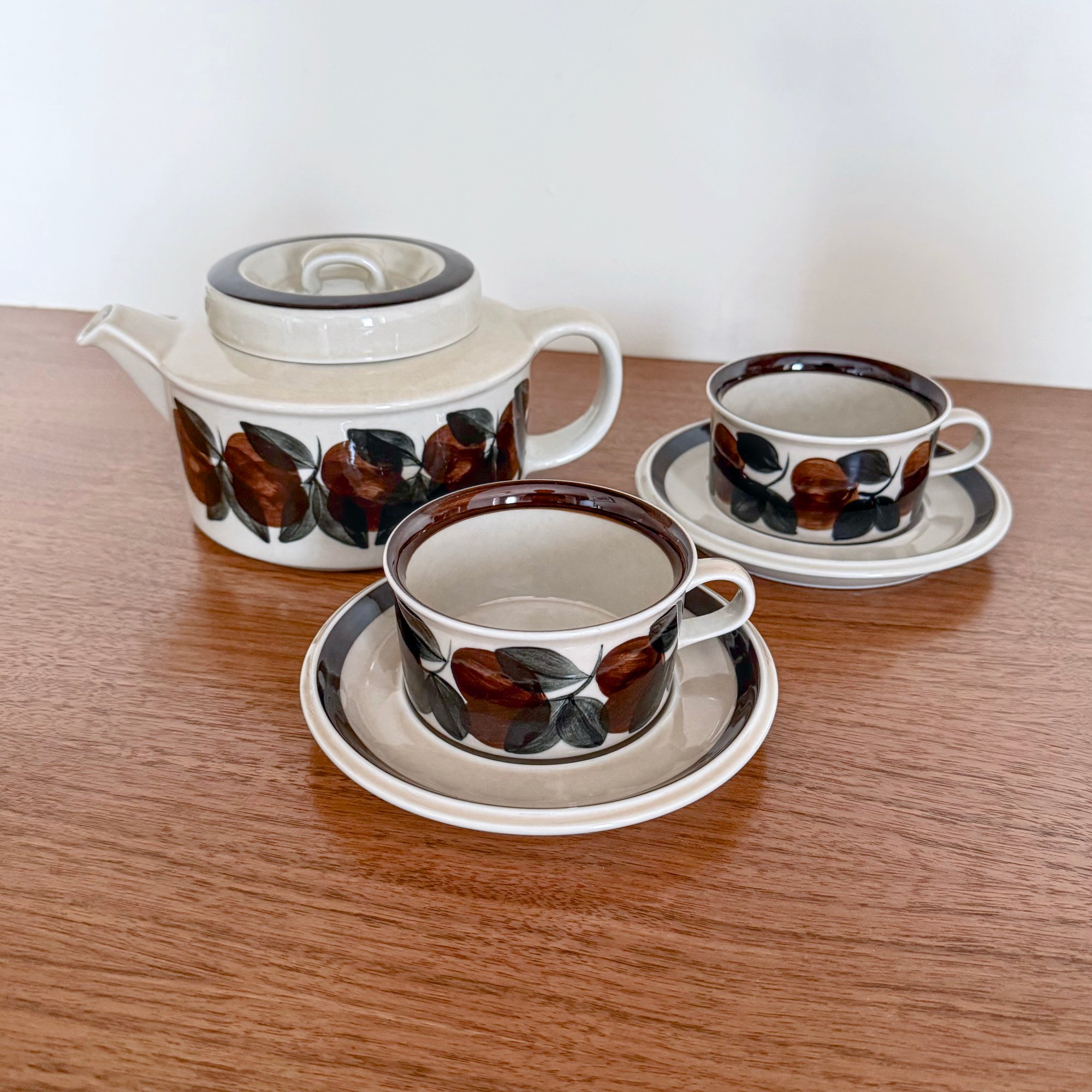 Vintage Arabia Finland Ruija tea set. Designed by Raija Uosikkinen, Finland 1970s. In good vintage condition with signs of use.