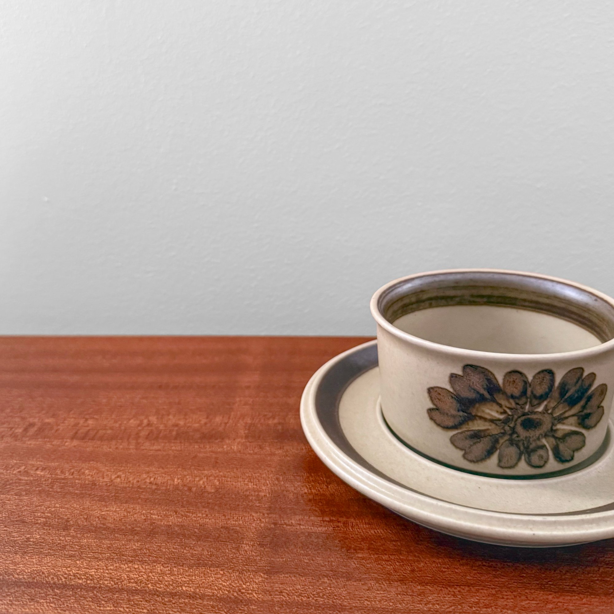 Vintage Arabia Finland Tunturi tea cup and saucer. Designed by Olga Osol, Finland 1960s. In good vintage condition with signs of use.