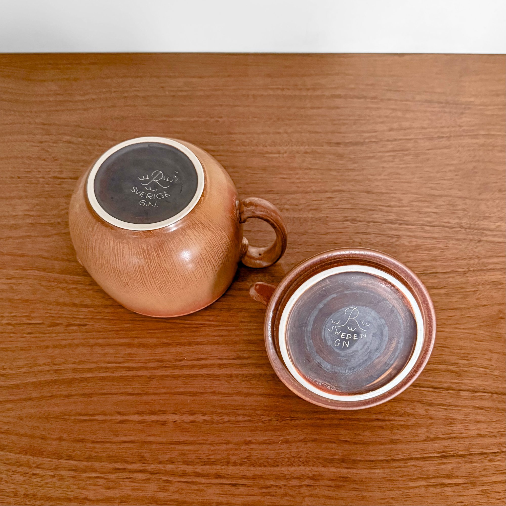 Rare vintage Rörstrand light brown stoneware double teapot. Bottom jug is for hot water, which helps keep tea in the teapot above warm. Designed by Gunnar Nylund, Sweden 1940s-50s. In excellent vintage condition, underside marked "R (three crowns) Sweden GN".