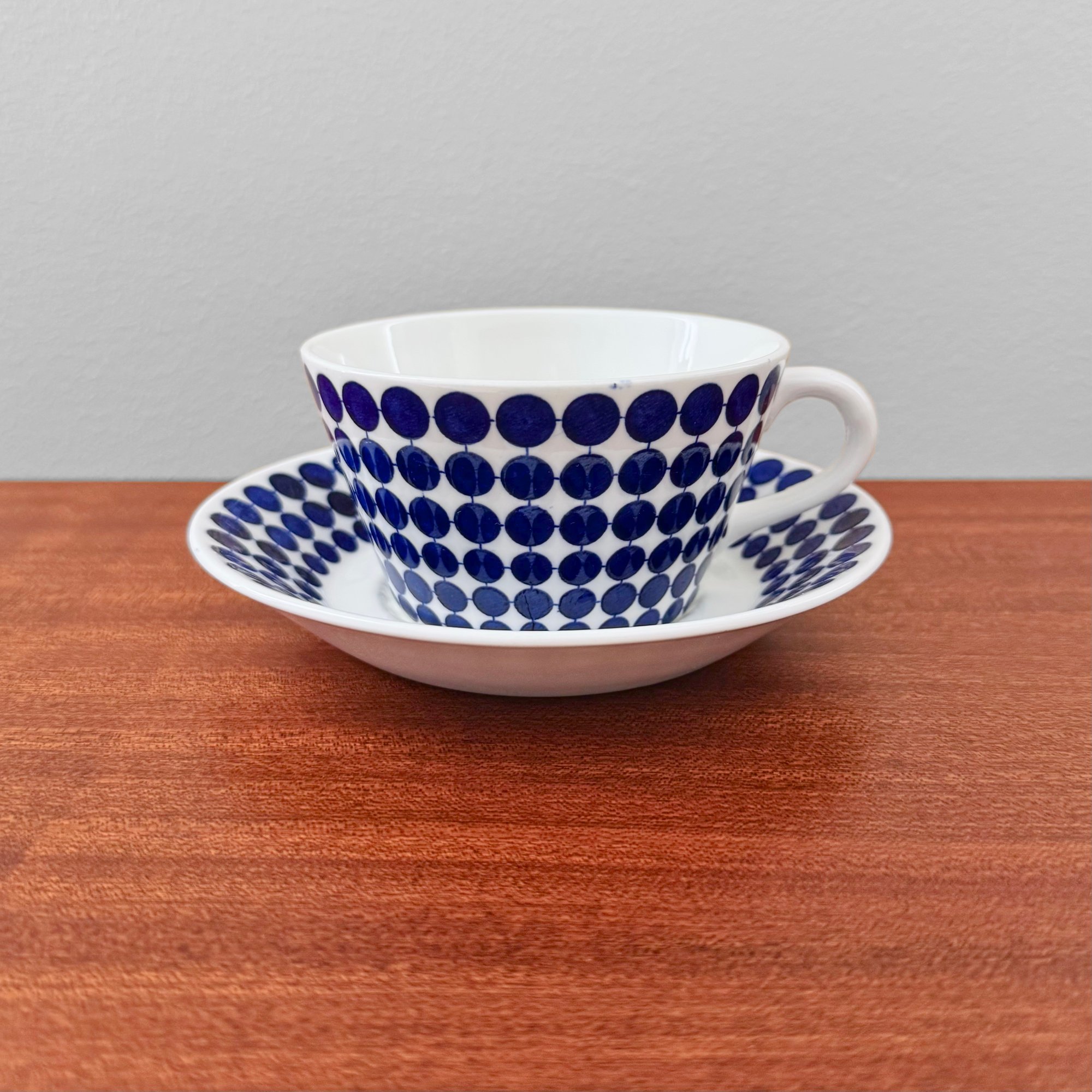 Vintage Gustavsberg Adam tea cup and saucer. Designed by Stig Lindberg, Sweden 1950s. In very good vintage condition with signs of use.