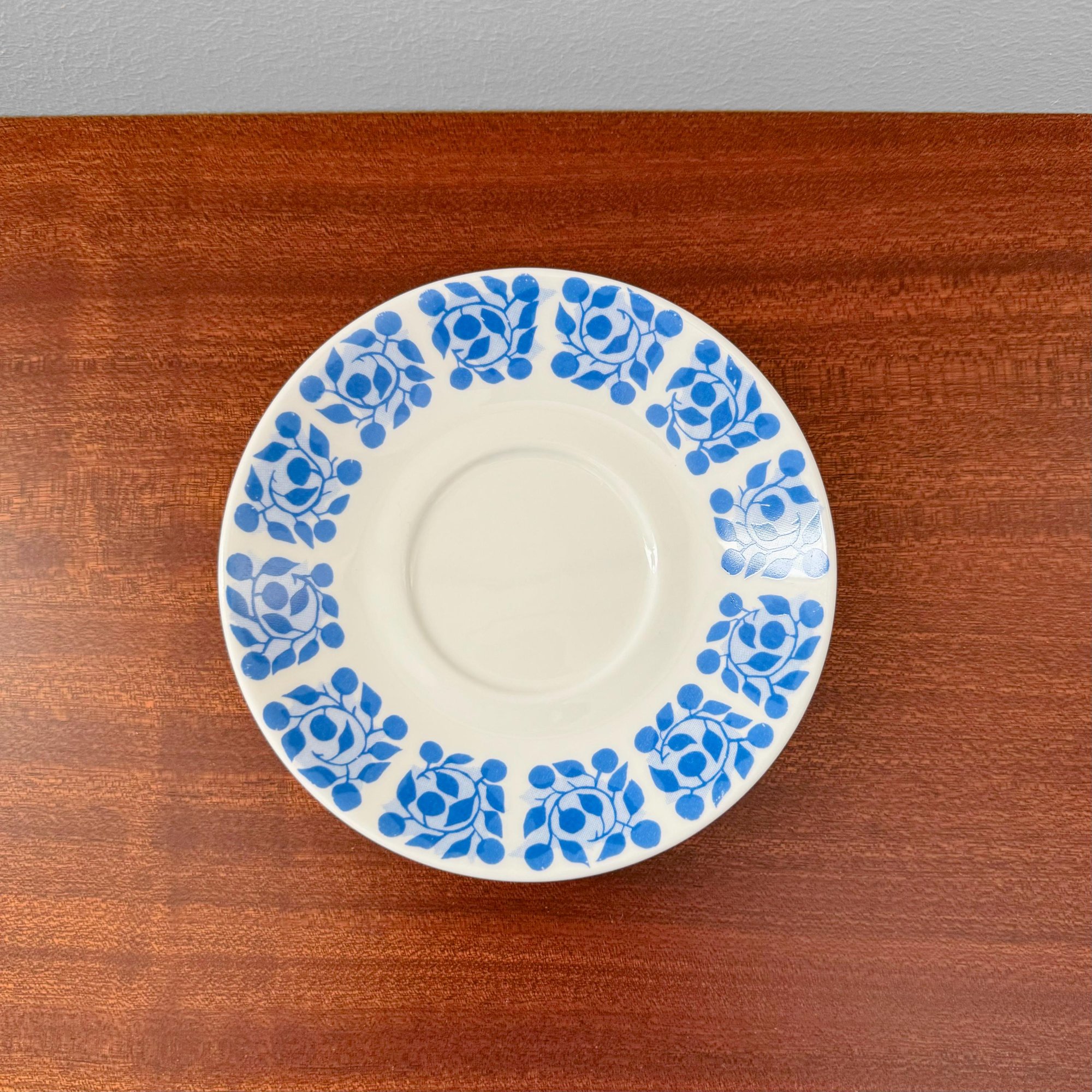 Very rare vintage Gustavsberg Bladruta coffee cup trio set with cake plate. Designed by Stig Lindberg, Sweden 1960s. In good vintage condition with signs of use.