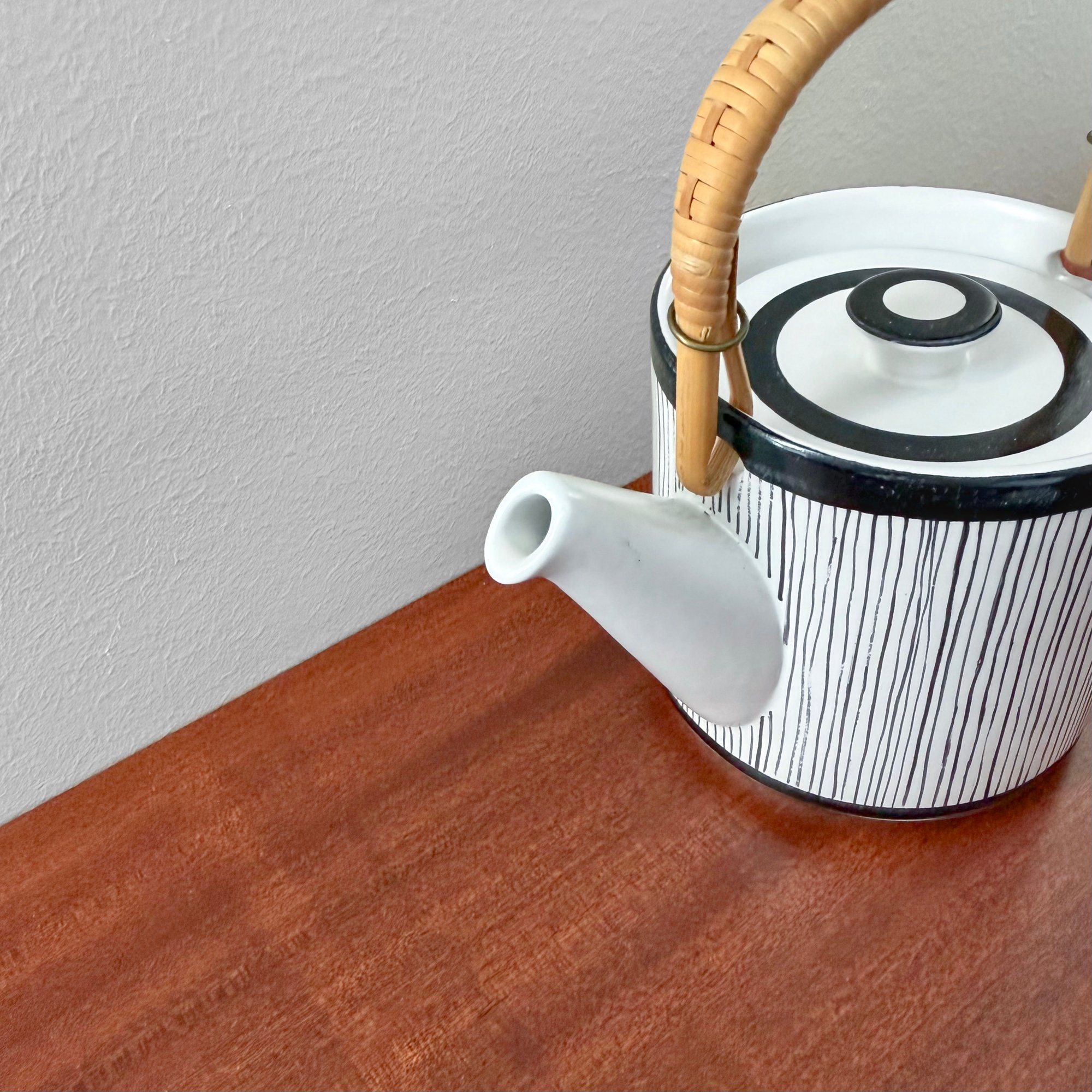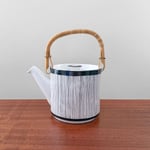 Rare vintage Gustavsberg Faience teapot with cane handle. Designed by Stig Lindberg, Sweden 1960s. In excellent vintage condition, underside signed with studio hand.