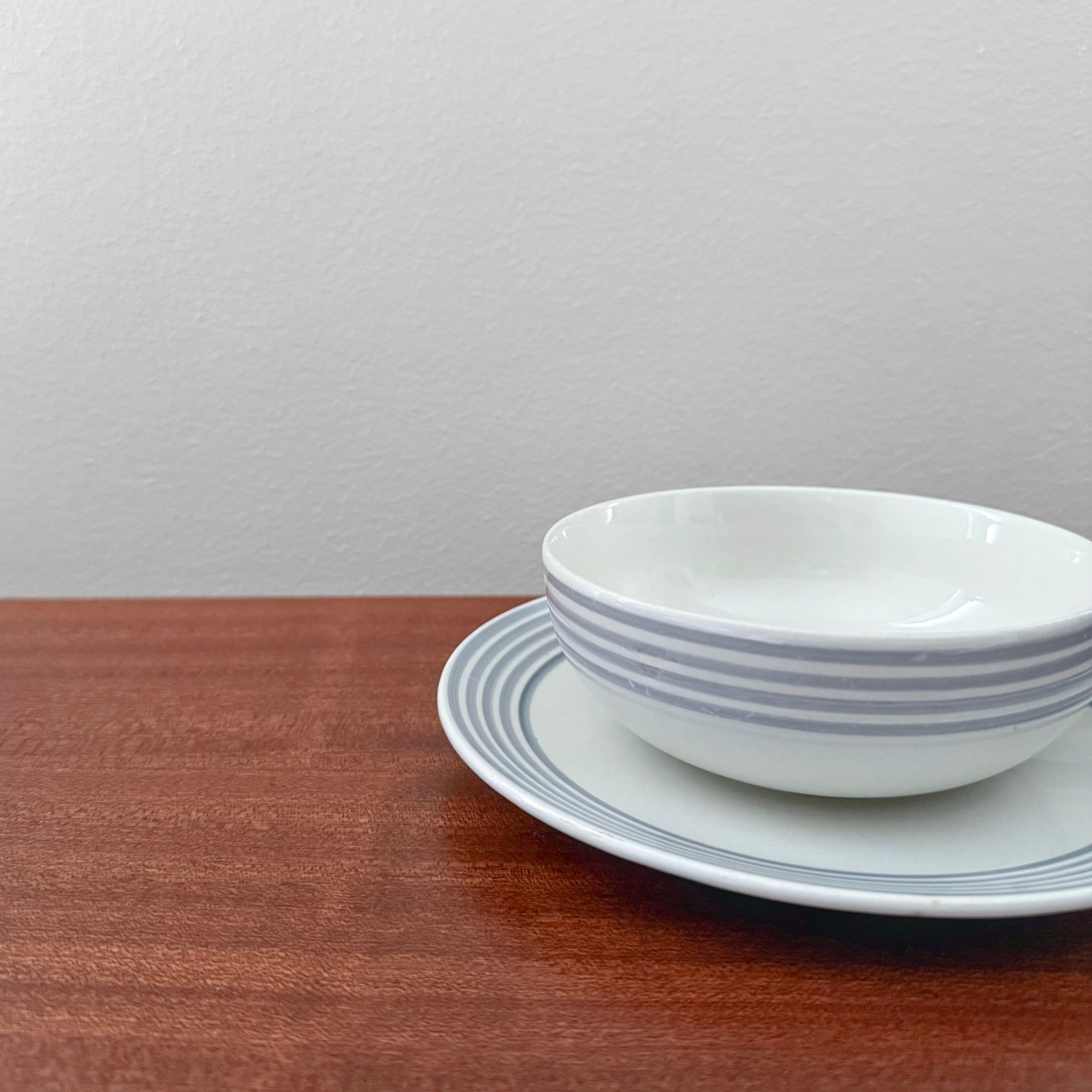 Rare vintage Gustavsberg Grå Ränder tea cup and saucer. Designed by Wilhelm Kåge, Sweden 1940s. In good vintage condition with signs of use and some discolouration.