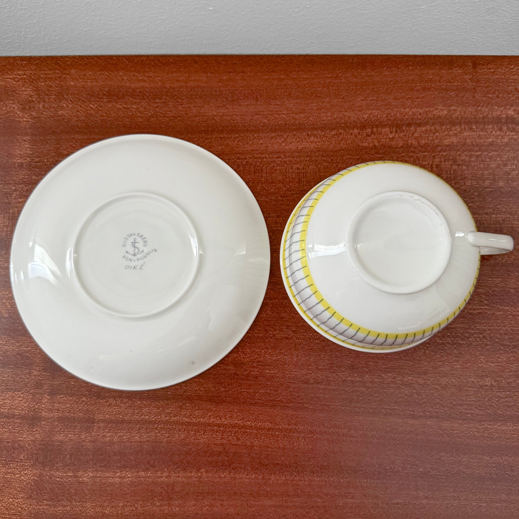 Very rare vintage Gustavsberg Piké tea cup and saucer. Designed by Stig Lindberg, Sweden 1950s. In excellent vintage condition.