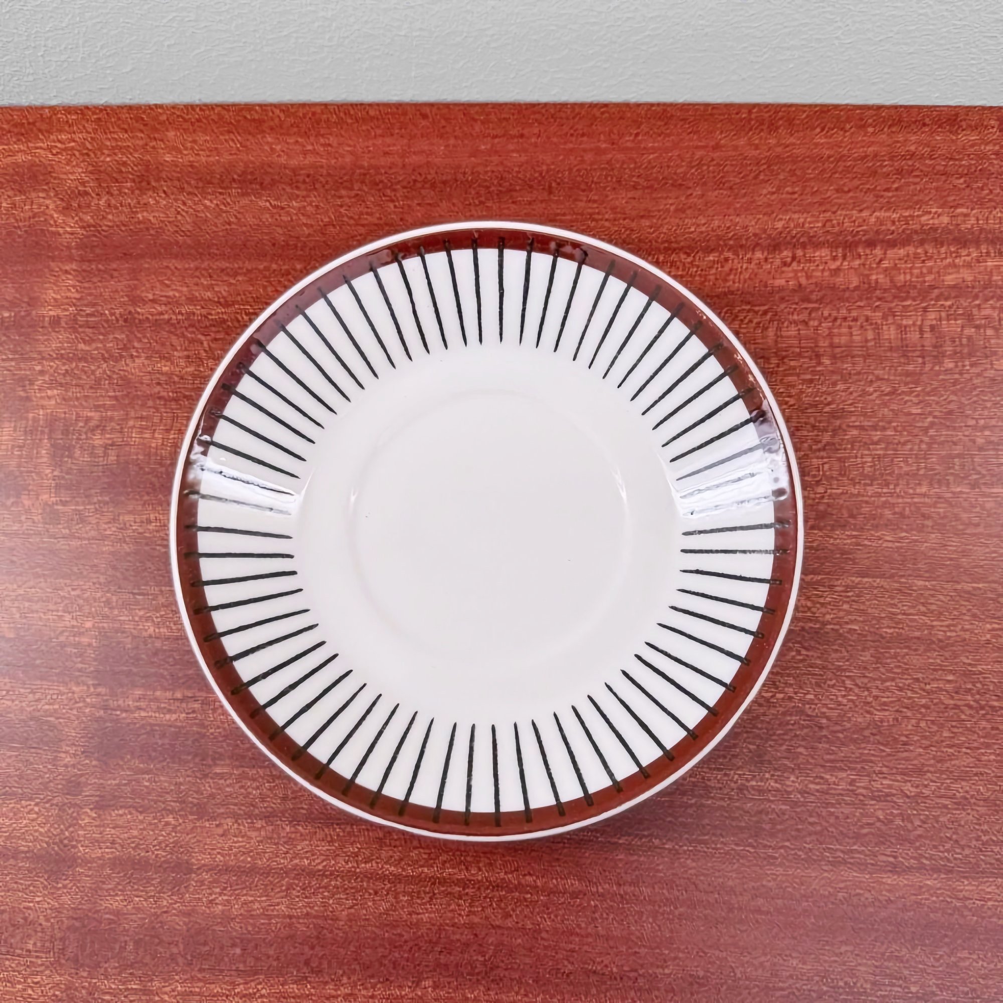 Vintage Gustavsberg Spisa Ribb tea cup and saucer. Designed by Stig Lindberg, Sweden 1950s. In very good vintage condition with signs of use.
