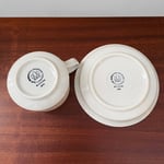 Dimensions: Cup diameter 8 cm, height 6 cm. Saucer diameter 14 cm. Cake plate diameter 17 cm.