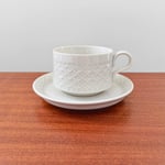 Super rare vintage Bing & Grøndahl Cordial Palet off-white tea cup and saucer. Designed by Jens Harald Quistgaard, Denmark 1960s. In excellent vintage condition, one saucer has some crazing.