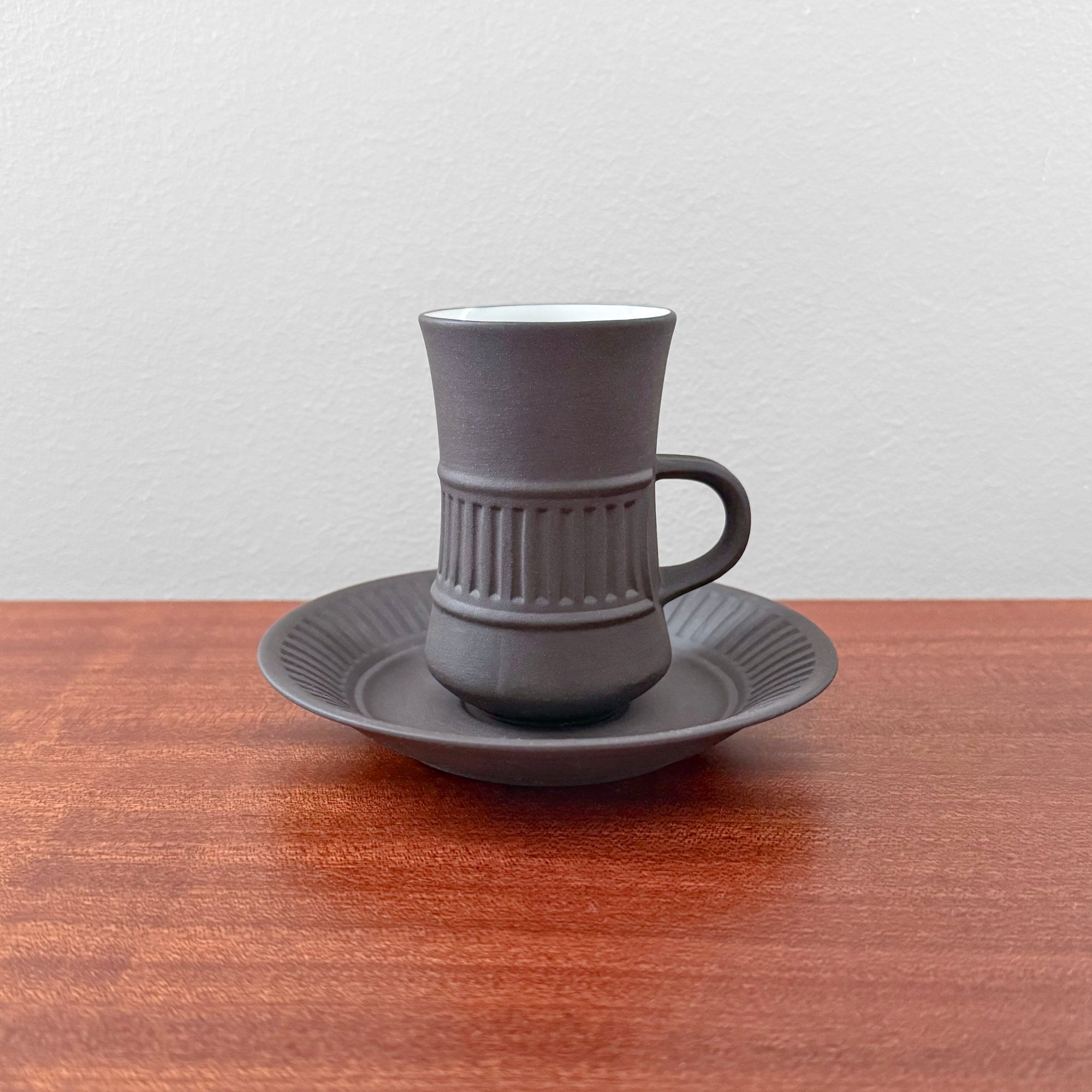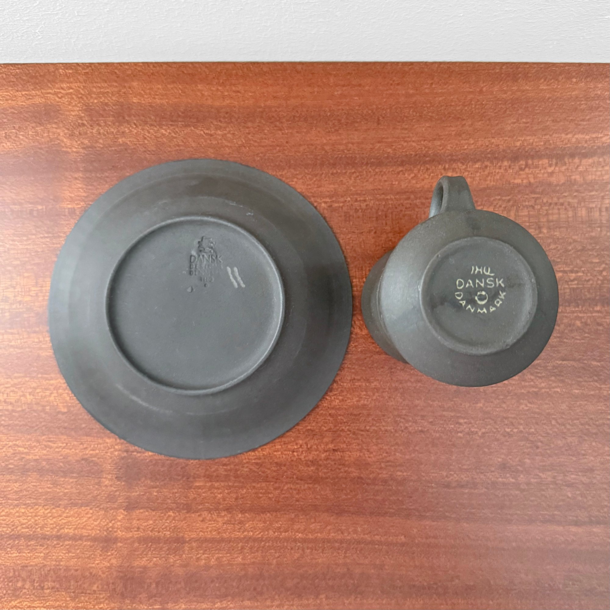 Vintage Dansk Designs Flamestone coffee cup and saucer. Designed by Jens Harald Quistgaard, Denmark 1950s. In good vintage condition with signs of use.
