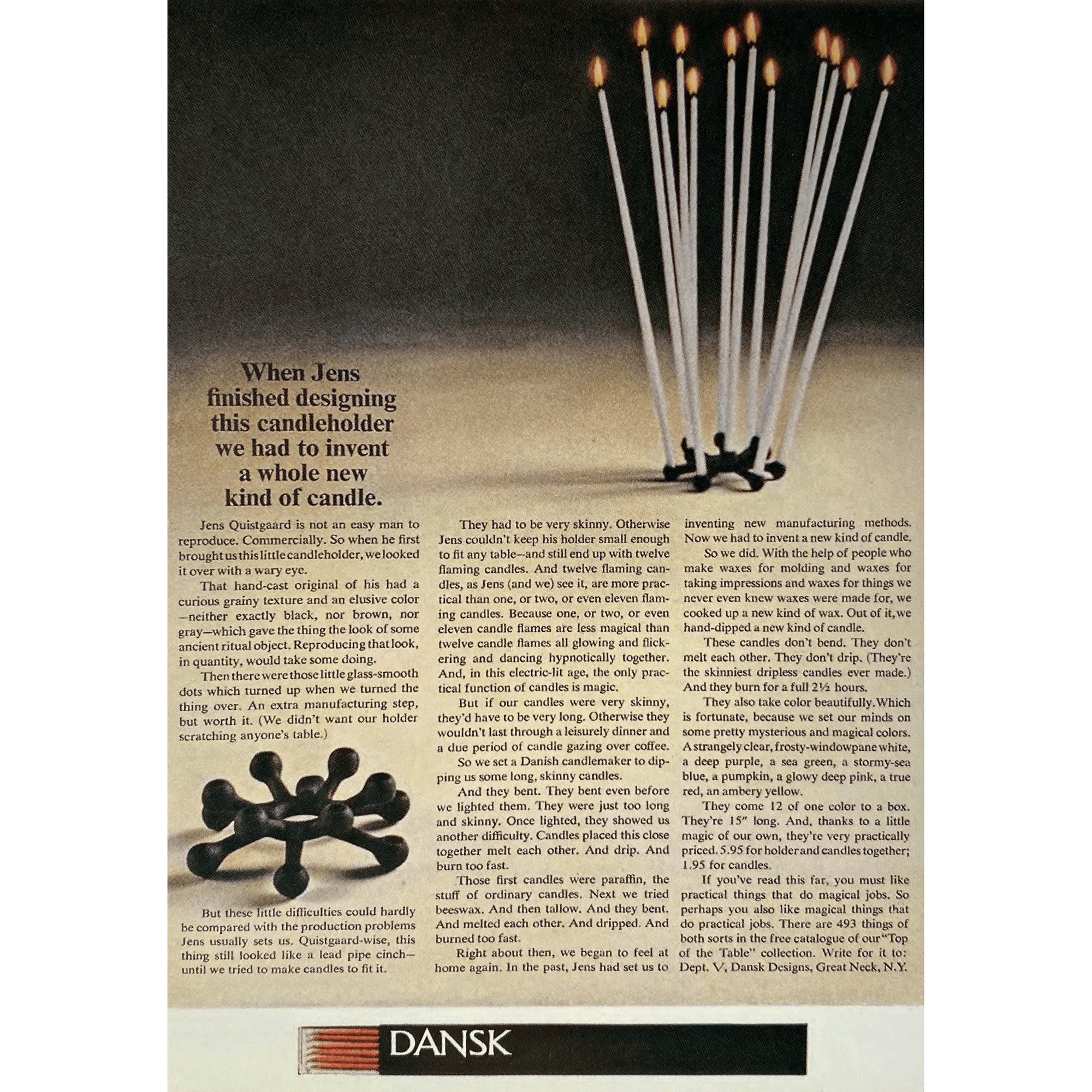 Vintage Dansk Designs Spider cast iron candle holder. Holds twelve thin "tiny taper" candles. Designed by Jens Harald Quistgaard, Denmark 1960s. In very good vintage condition with candle residue, underside stamped "Dansk Designs Denmark IHQ".
