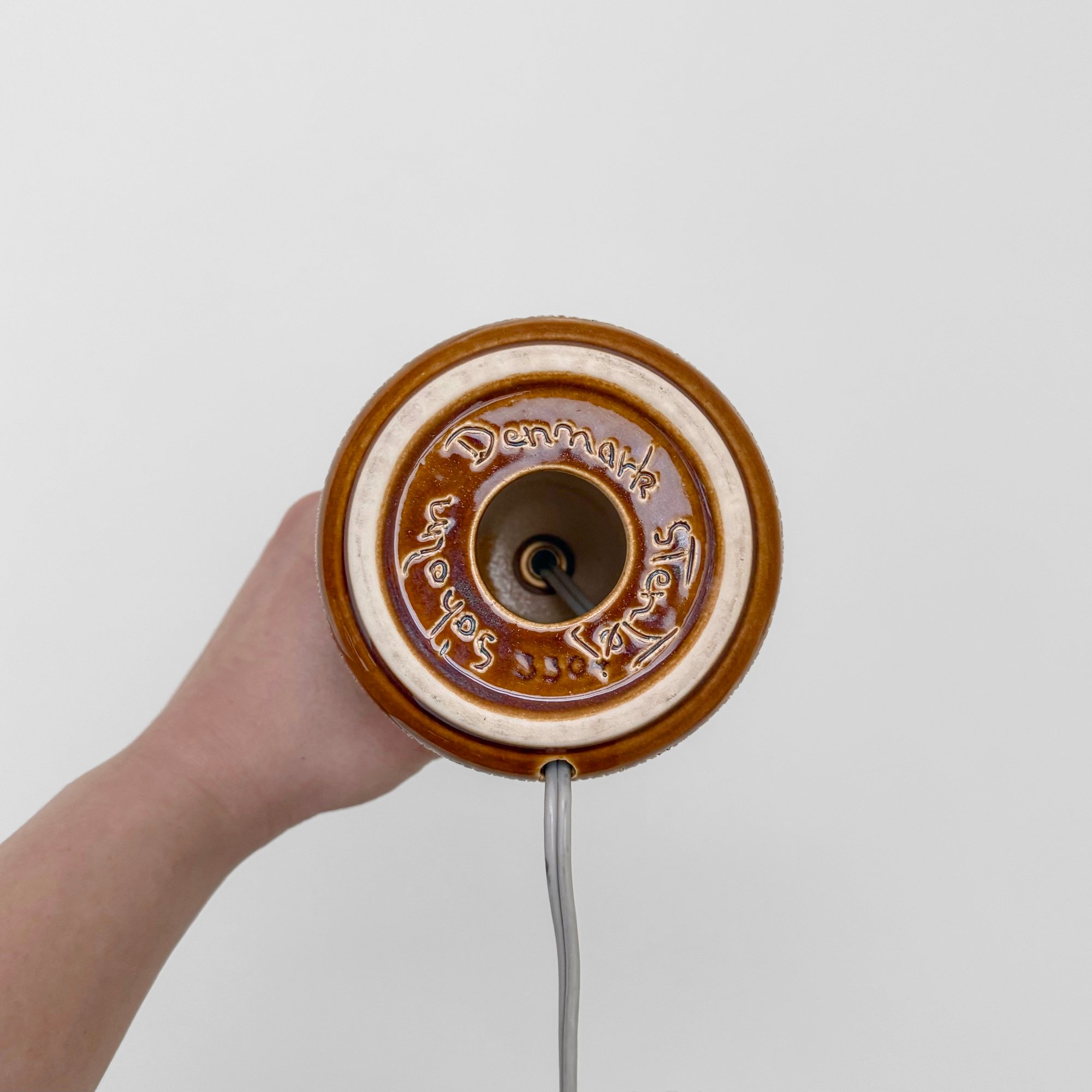 Vintage Søholm Manilla small stoneware table lamp. Designed by Svend Aage Jensen, Denmark 1960s. In good working condition with some crazing, underside marked "Søholm Denmark Stentøj 3304". Fitted with new fabric shade.